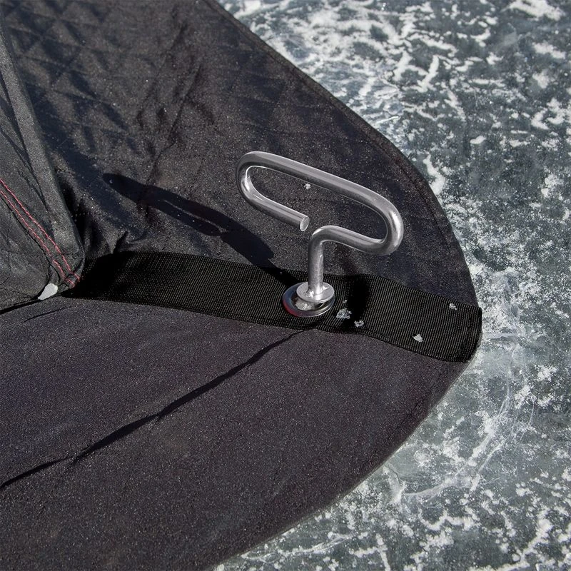 - DELUXE TIE-DOWNS AND IN-SKIRT GROMMETS: Deluxe, cam strap tie-downs are included for rugged, solid anchoring in windy conditions. Ice anchor grommets are now included directly in the shelter skirt for convenience.