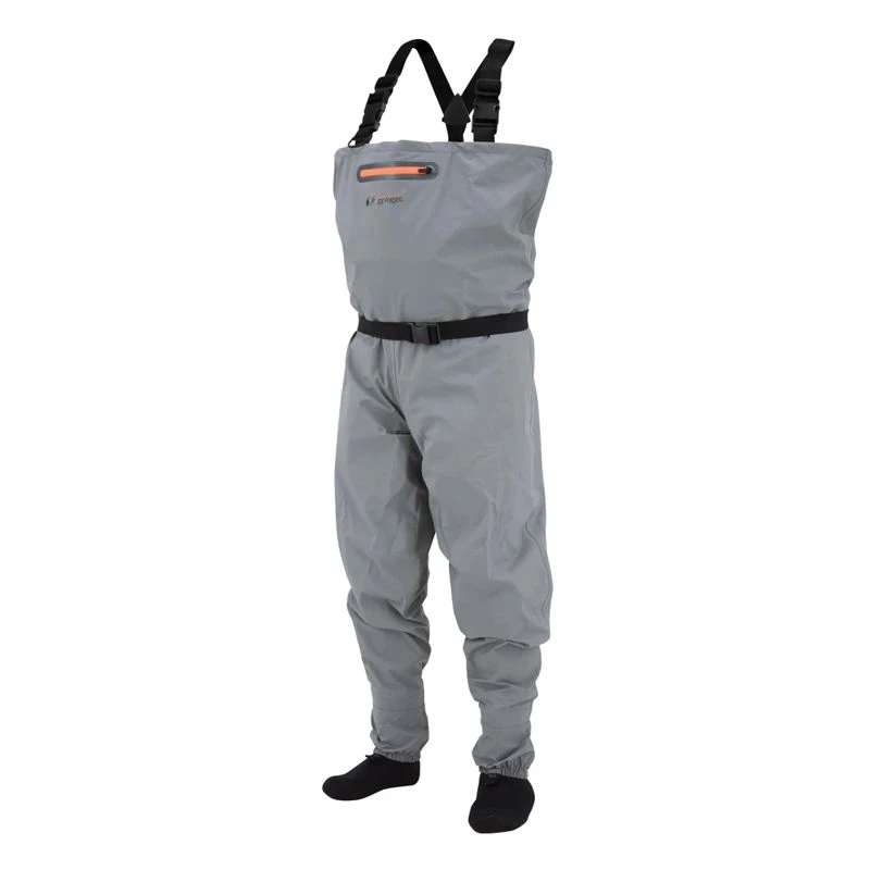 Frogg toggs Canyon II Stockingfoot Chest Waders a built durable with premium materials, and innovative features. These waders feature 4-ply nylon upper and bring 100% waterproof/breathable protection, improved with exclusive Dri2Pore® technology for extreme water holdout and maximum breathability. All seams are then fully taped and sealed, ensuring watertight integrity. Featuring a chest pocket with splashproof zipper and built-in gravel guards. High-density, 4mm, form-fitting neoprene booties double-taped seams inside and out.