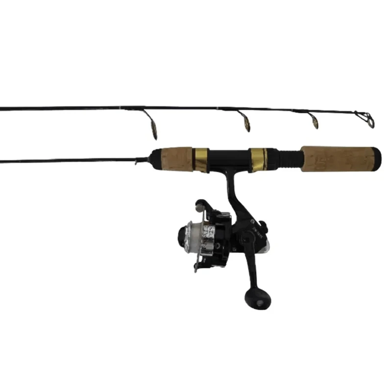 HT Polar Gold Medium Action Ice Combo features Cork handle with rings. Super sensitive composite rod and Includes 2B IAR reel.