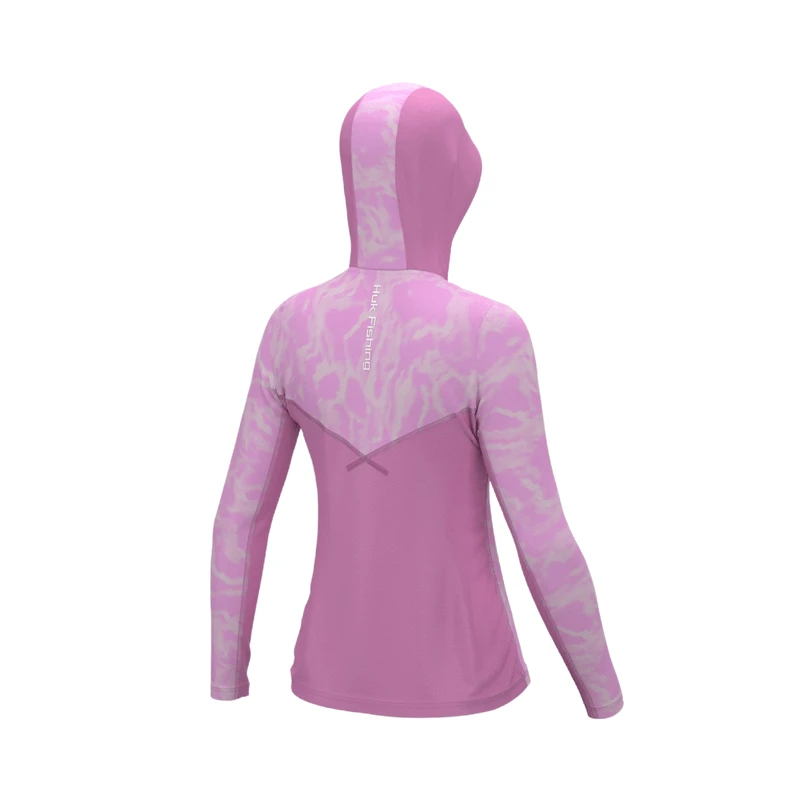 The Huk Icon X is one of the most popular fishing shirts available. When you wear this comfortable, perfect-fitting, sun-blocking +50 UPF hoodie you’ll be wearing apparel that not only looks great, but is built from state-of-the-art fabrics, durable poly-knit construction and most advanced materials for protection against the elements. Huk proudly introduce their latest women’s Icon X Hoodie featuring their Internal Cooling Element (I.C.E) technology – engineered at the fiber level to cause an endothermic reaction once there is any contact with moisture causing your body temperature to drop in minutes.