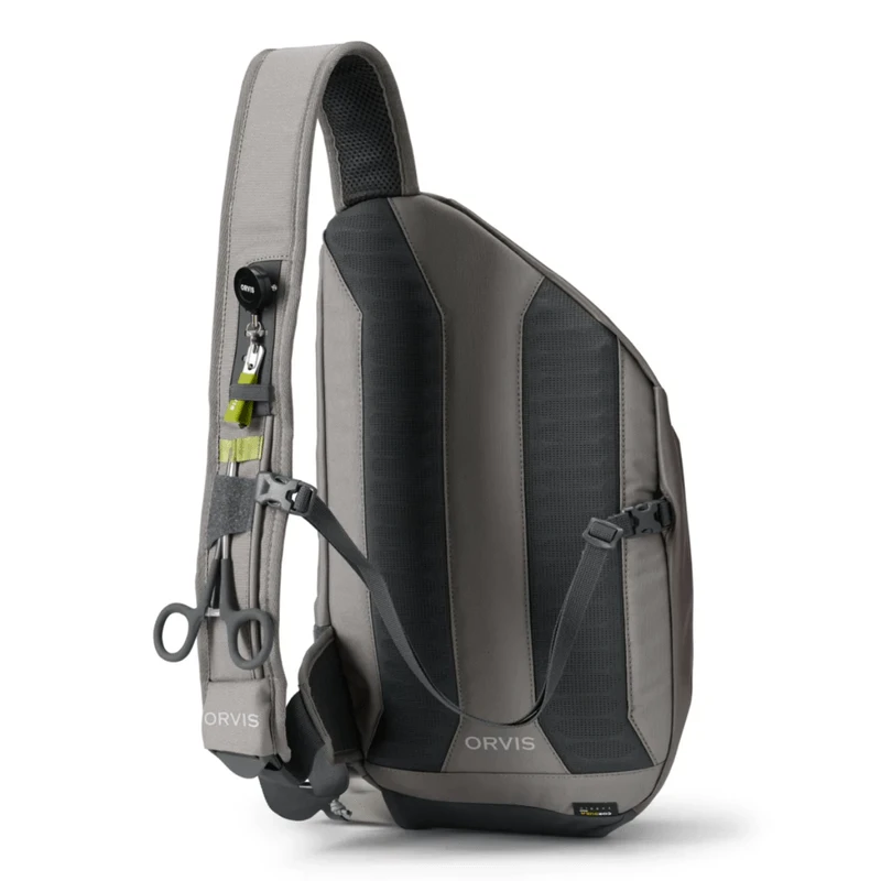 Carry everything you need in an easy-to-access design without it getting in your way with the Orvis Sling Pack. Featuring 11L of cargo space, this pack is perfect for packing all your necessities. A Tippet Whippet receded docking station comes with a tippet bar that allows hassle-free access to as many as 6 spools. The roomy main compartment boasts a zippered interior pocket with key fob and stretch mesh pockets for organizing your gear. This fishing pack has a drop-down zippered pocket with elastic mesh slip pocket, while a low-profile pass-through offers easy access for your nippers or a zinger. An integrated water-bottle holder secures your hydration, plus the front of the strap features a host of tool attachment points. Built for slinging over the left shoulder so your casting arm (sorry southpaws) remains free.