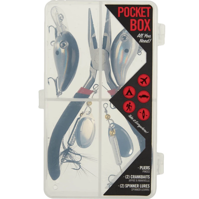 - Includes: Pliers, Tackle Box, Rod with Reel, 6-Pound Mono Line, 2 Crank Baits, 2 Spinner Baits